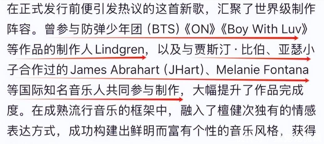 制作阵容被逐一提及,防弹少年团热单制作人Lindgren,和贾斯汀·比伯合作过的James Abrahart,MV导演李汉杰,合作过BLACKPINK和EXO,这些名字放在一起,本身就很有分量。