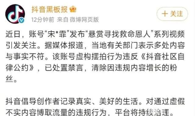 宋雨霏摆拍事件并非个例,其暴露的行业痛点引发全网热议。 该团队精准利用“感恩”“正能量”等公众情感共鸣点,通过“无标注摆拍+真实场景伪装”模糊“剧情演绎”与“社会新闻”的边界,导致网友同情心被滥用。有网民吐槽:“以后真有人需要寻恩求助,恐怕没人敢信了”。 尽管抖音要求“剧情类内容必须标注”,但该账号12条视频均未标注相关提示,反而通过“真实时间地点”强化真实性,暴露平台AI审核对“隐性摆拍”的识别短板。网友建议:对“悬赏”“寻亲”等敏感题材应要求提供官方证明方可推流。