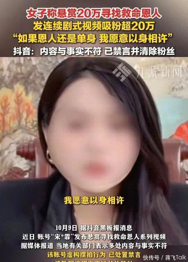 2025年8月21日,短视频账号“宋雨霏”发布第一条视频,以“溺水幸存者”人设宣称:自己曾在海边被陌生男子救起,现悬赏20万元寻找“救命恩人”,甚至表示若对方单身愿“以身相许”。这条情感饱满的视频迅速引发关注,随后两个月内,该账号连续发布12条“寻恩进展”视频,构建起跌宕起伏的“连续剧式”叙事。